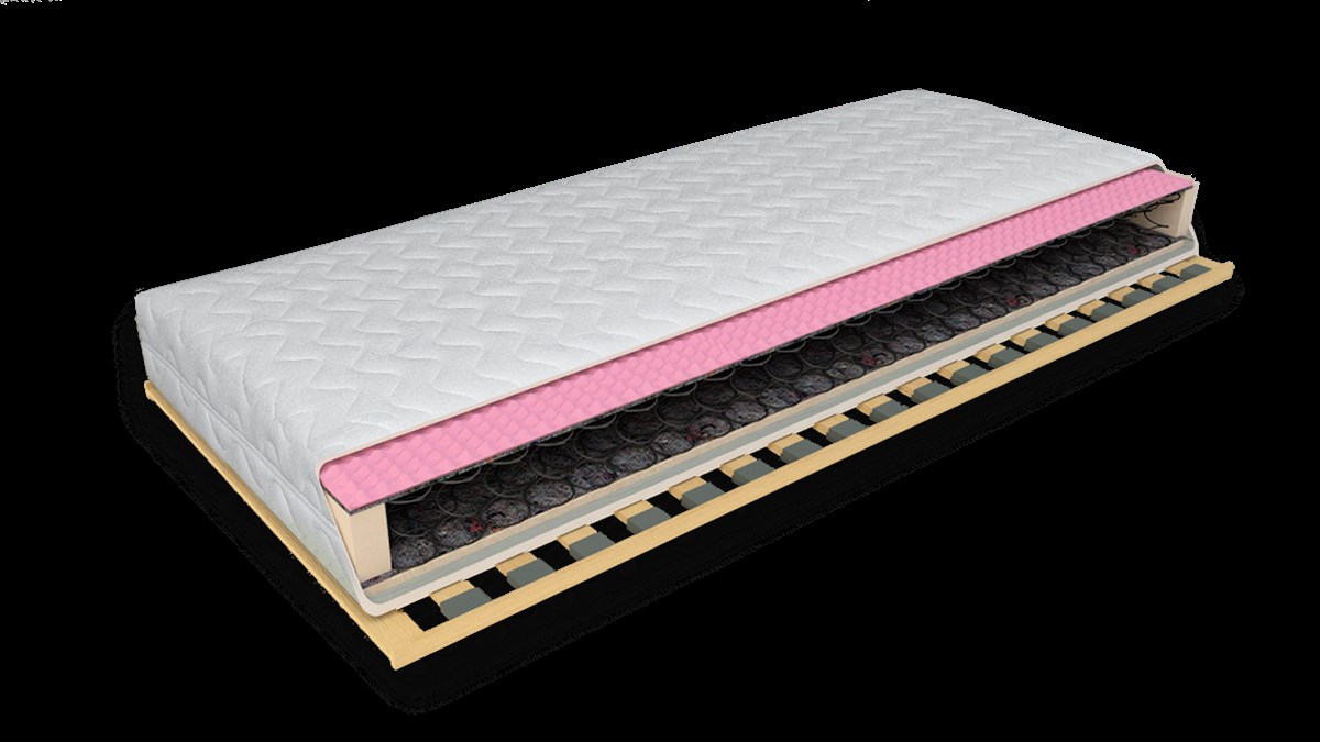 Dobrej jakości materac bonellowy. Sprężyny połączone szeregowo z drutu podwójnie hartowanego.Warstwa wierzchnia materaca wykonana z pianki masującej Wellness. Zaletą pianki jest wysoka sprężystość i wyprofilowanie w specjalny sposób, co podczas użytkowania sprawia wrażenie delikatnego masażu.